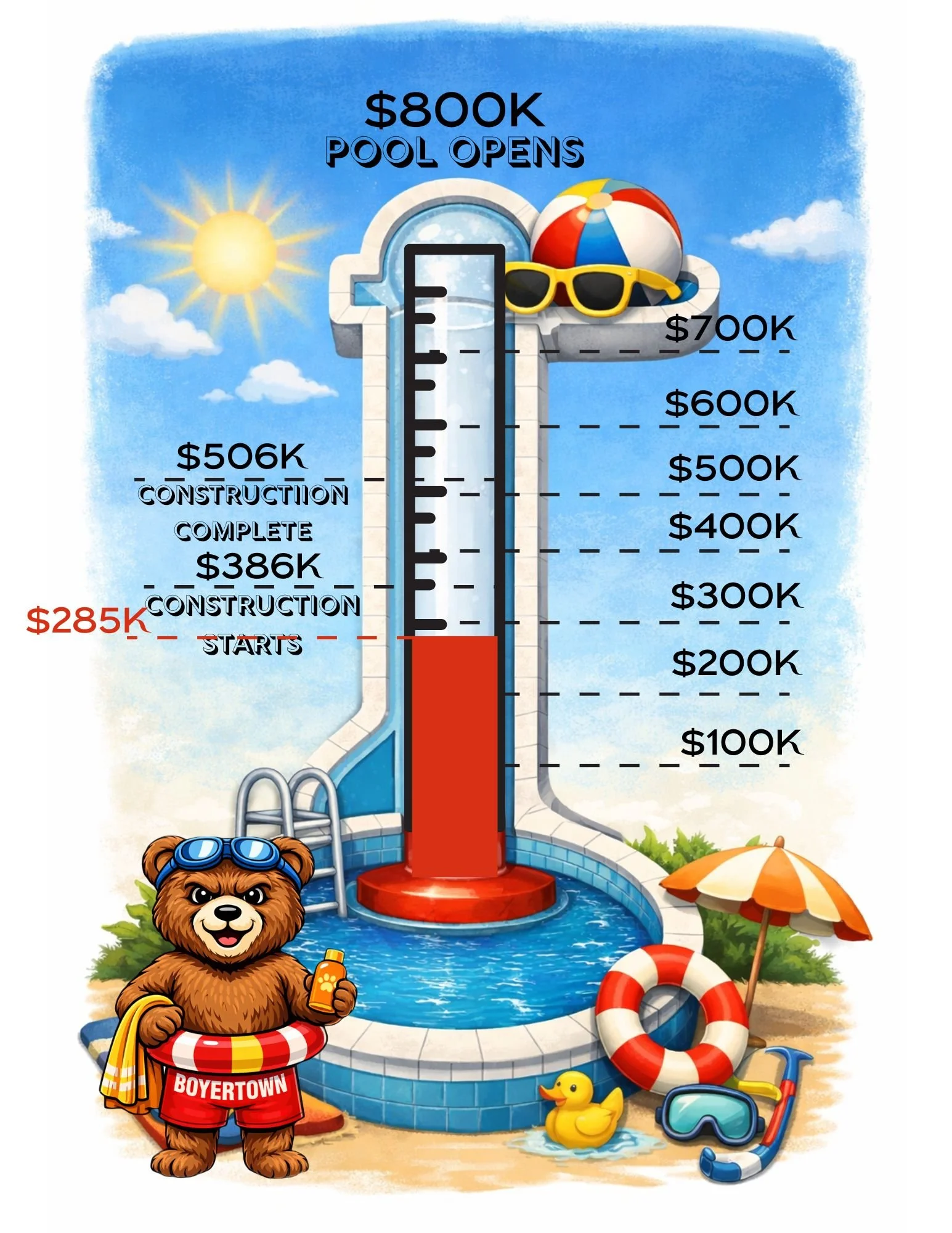 Grab yours today to support the cause and spread awareness! All proceeds go directly to funding the opening and renovations of the pool.